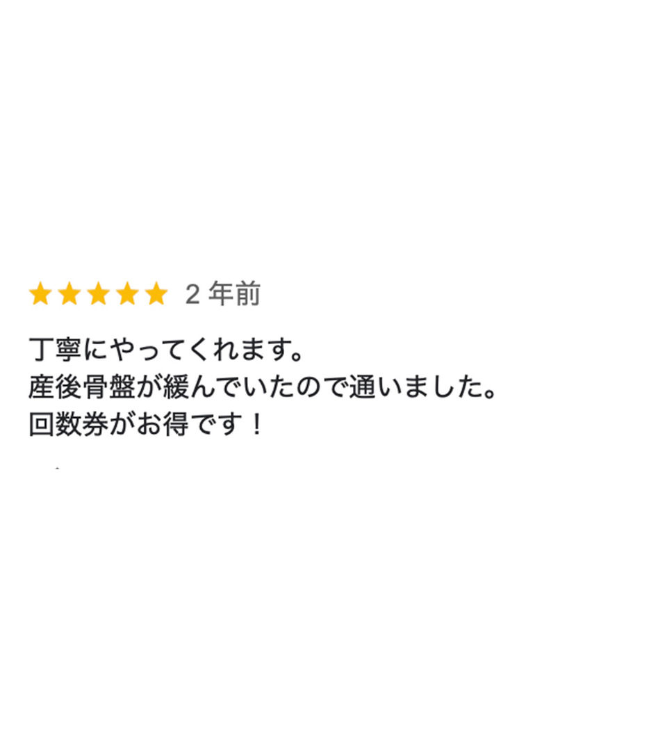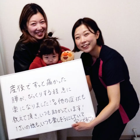 痛みと刺激が少ない施術を行い、口コミで妊婦さんの利用が増える。通っていたおかけで快適なマタニティライフでした〜超安産でした〜とたくさんの笑顔をいただいています。